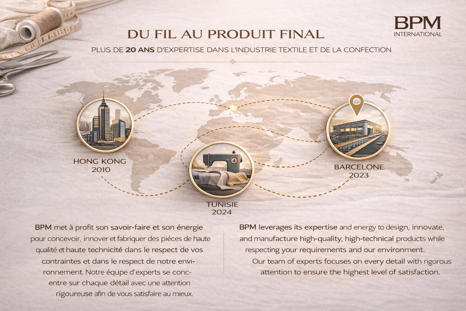C’est ainsi que depuis 2024, l’entreprise BPM international s’est implantée en Tunisie et se spécialise dans la production de pièces textiles premium. La société a rapidement réussi à attirer de nombreux professionnels du marché grace à son sérieux et le savoir-faire reconnu de cette structure familiale internationale au carnet d’adresse conséquent.