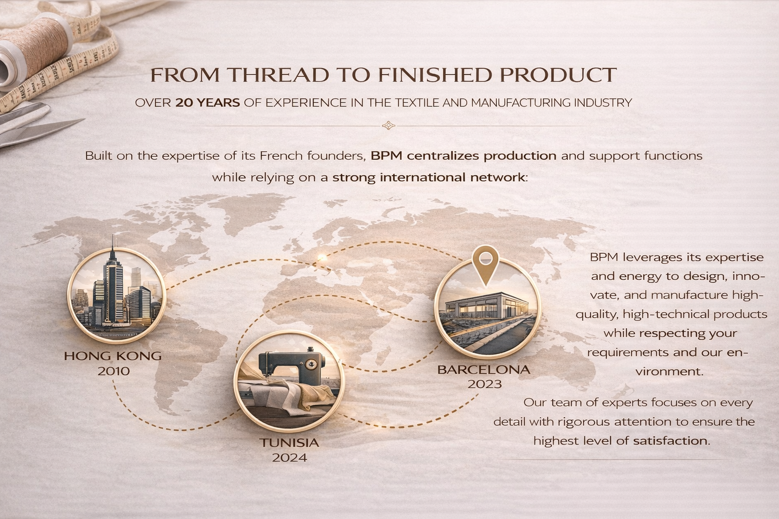 Since 2024, BPM International has established operations in Tunisia, specializing in the production of premium textile pieces. The company quickly gained the trust of industry professionals thanks to its reliability and the recognized expertise of this international family-owned structure with an extensive professional network.